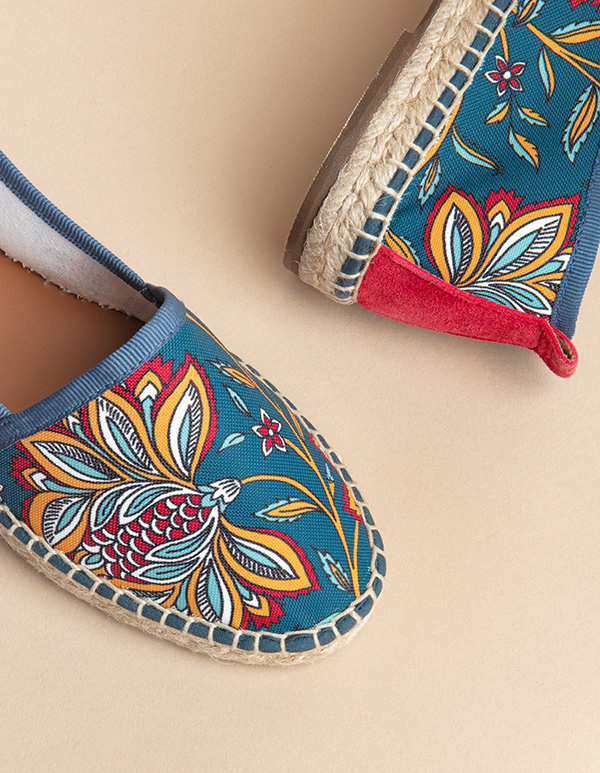 En collobaration avec la très belle marque de décoration JAMINI, nous avons imaginé une déclinaison d’espadrilles plate et talon. Ces espadrilles plates aux couleurs de l’Inde apporteront de la gaité à vos tenues.