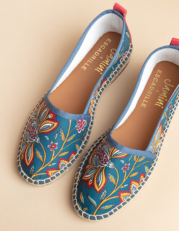 | Description | Espadrille plate de création française en collaboration avec Jamini Design. |