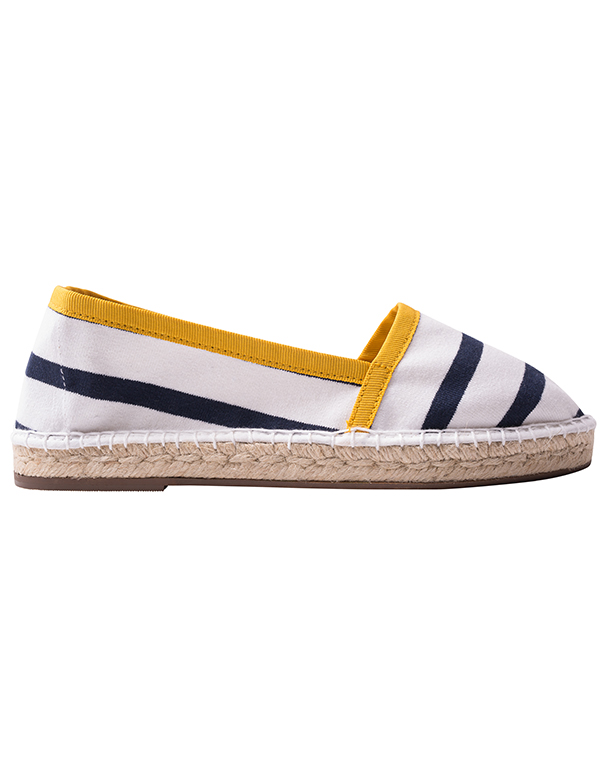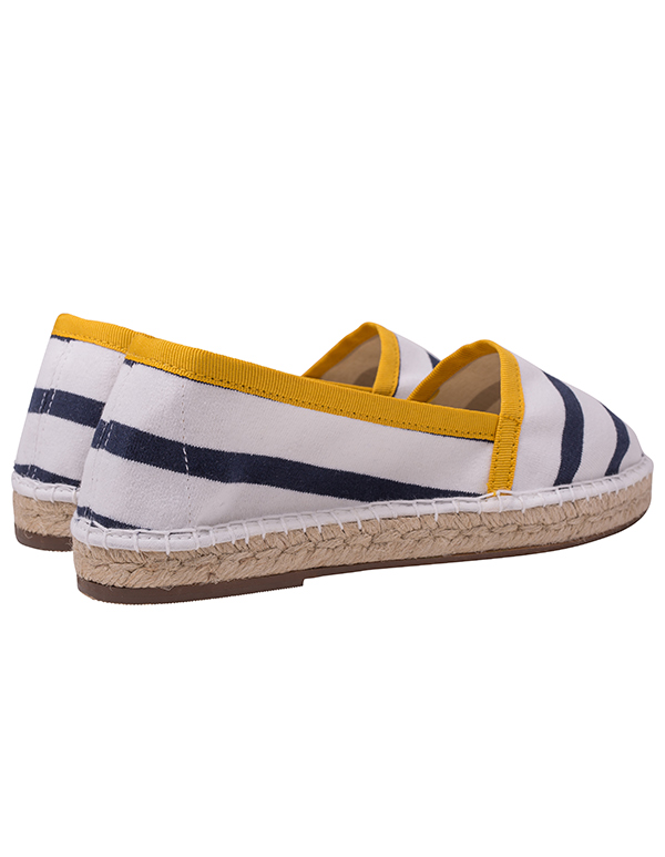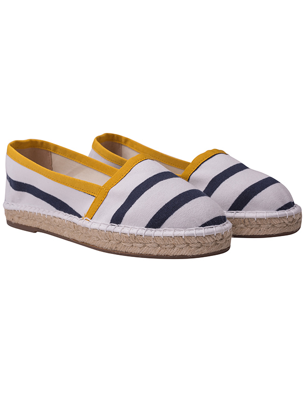 Escadrille reprend la traditionnelle espadrille rayée et la rehausse d’une pointe de couleur jaune miel pour coller à la tendance et sublimer ce bel intemporel.