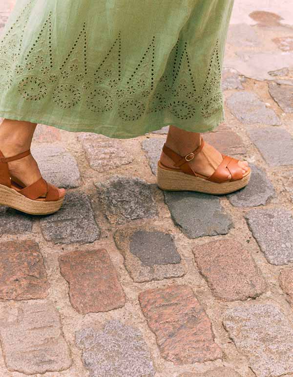 Les espadrilles à talons compensés Cordoue, c’est la petite nouveauté de chez Escadrille. Avec sa semelle compensée plateforme, sa bride en cuir à attacher autour de la cheville, et ses bandes croisées sur le dessus de la chaussure, c’est la paire glamour et tendance.