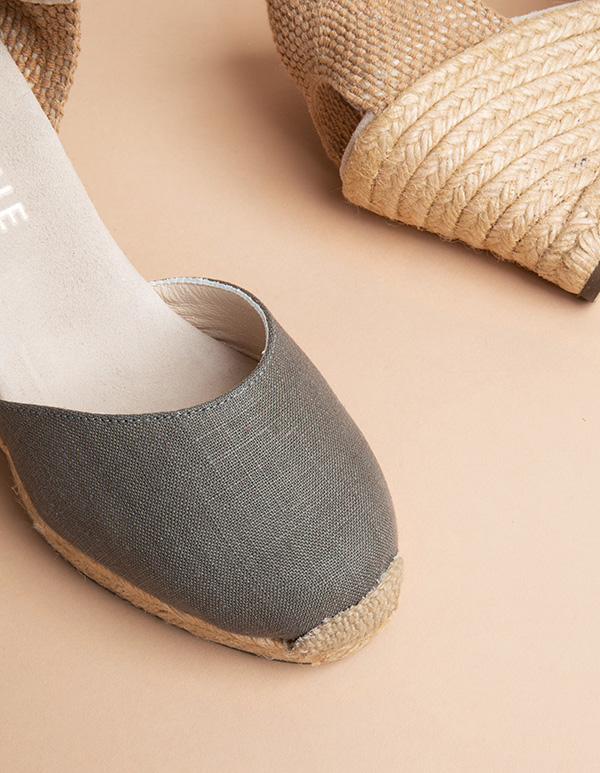 Espadrille à talon compensé couleur olive. Intemporelle, tendance et ultra-confortable, cette paire d’espadrilles vous accompagnera à travers les saisons.