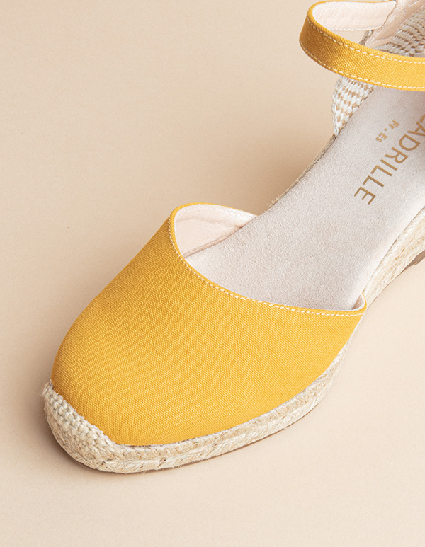 Si vous recherchez des espadrilles compensées à la fois trendy et confortables, vous craquerez pour l’espadrille femme mi-talon jaune miel Dolce Vita.