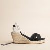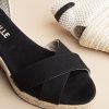 Nos espadrilles Minorque à talon moyen sont idéales pour les belles journées ensoleillées. Ces espadrilles à talon compensé ouvertes sont déclinées avec un ruban gros grain noir à nouer autour de la cheville pour un style raffiné.