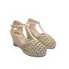 | Description | Espadrille compensée forme "Salomé" en cannage cuir doré et tressé à la main avec bride, finition en cuir chèvre velours. |