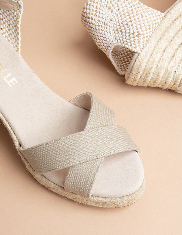 Nos espadrilles ouvertes Minorque, mi-talon avec bride en toile lin pour les journée d’été ensoleillées. Ce modèle Minorque est un incontournable pour votre dressing.