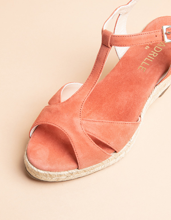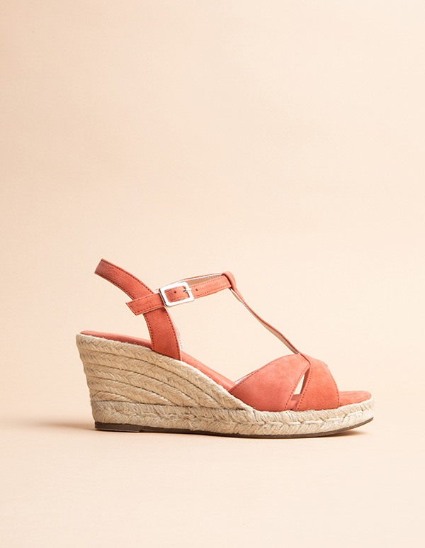 Palombaggia, les espadrilles compensées mi-talon en terracotta pour un look estival. Des espadrilles en cuir daim velours pour un style tendance et intemporel.
