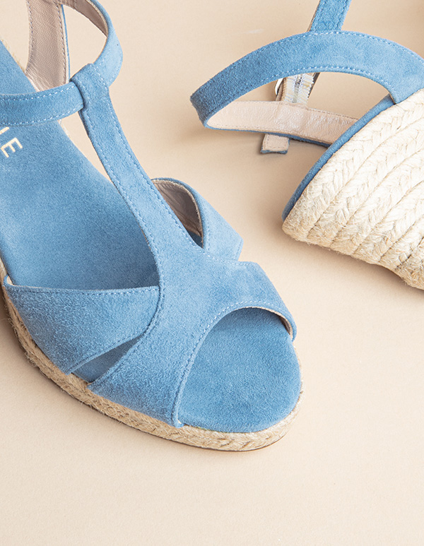 Laissez-vous séduire par la paire d’espadrilles à talon Palombaggia bleue, la pièce indispensable dans un dressing chic et moderne.