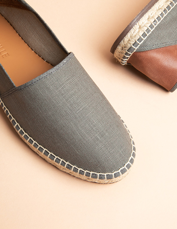 Le modèle sanary en toile couleur olive avec sa touche de cuir sur l’arrière. L’espadrille pour homme idéale pour cette saison 2023.