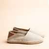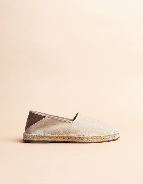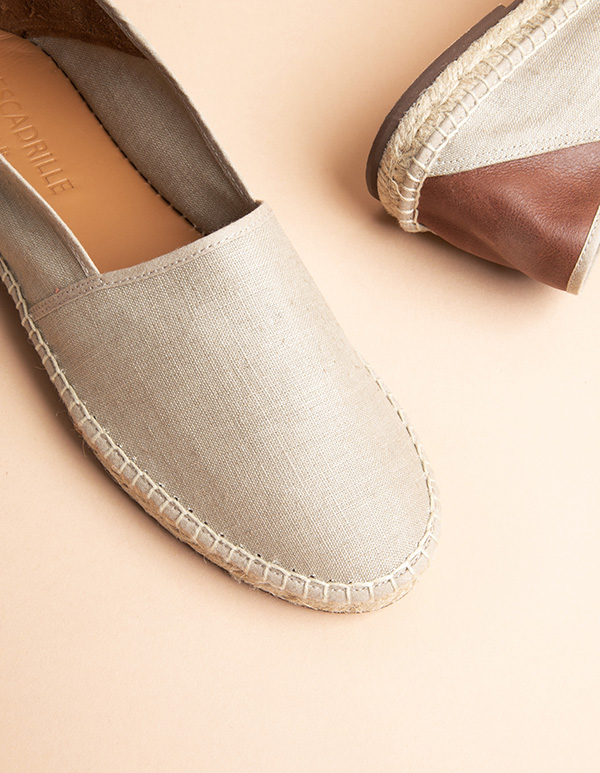 Les espadrilles cousues main en toile couleur lin et cuir à l’arrière pour s’assortir à toutes vos tenues pour un style sobre et décontracté.