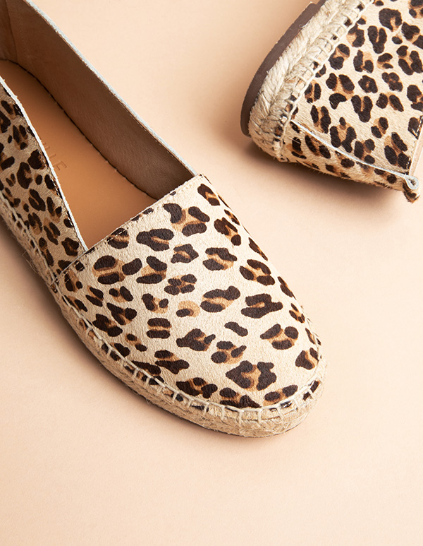 Nos petites espadrilles en cuir léopard clair seront parfaites pour vos escapades des beaux jours.