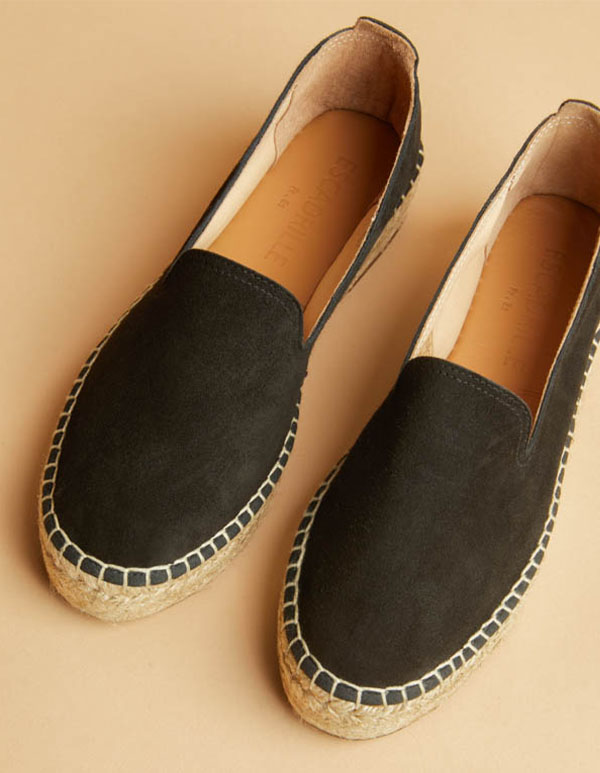 | Description | Nos espadrilles plates à plateforme en cuir noir. |