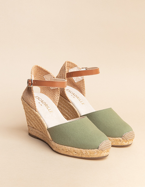 Khaki Dolce Vita wedge espadrilles with a dark strap for an urban touch. This women’s espadrille will be easy to wear, with a skirt, a dress or jeans, it will become your favorite pair in your wardrobe.