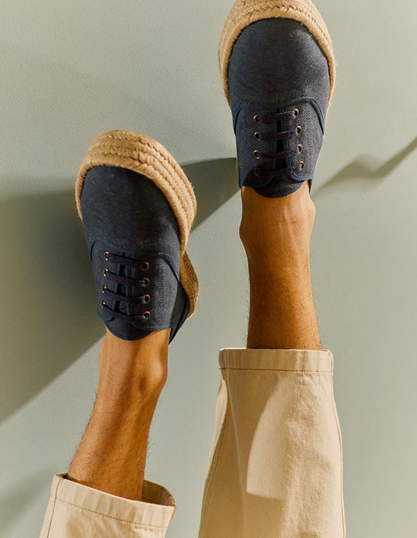 | Description | Les espadrilles pour hommes El Nino sont pensées et dessinées en France. Elles sont par la suite assemblée et cousues à la main, dans la province de Murica, en Espagne, dans nos ateliers, par nos artisans. Cette jolie paire d'espadrilles style tennis en coton biologique est décliné également en kaki. Plateforme de 3cm. Paire avec lacet, semelle en corde. Pour davantage de confort, nous avons ajouté une semelle intérieure en liège et une semelle extérieure vulcanisée. |