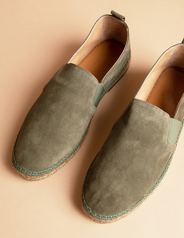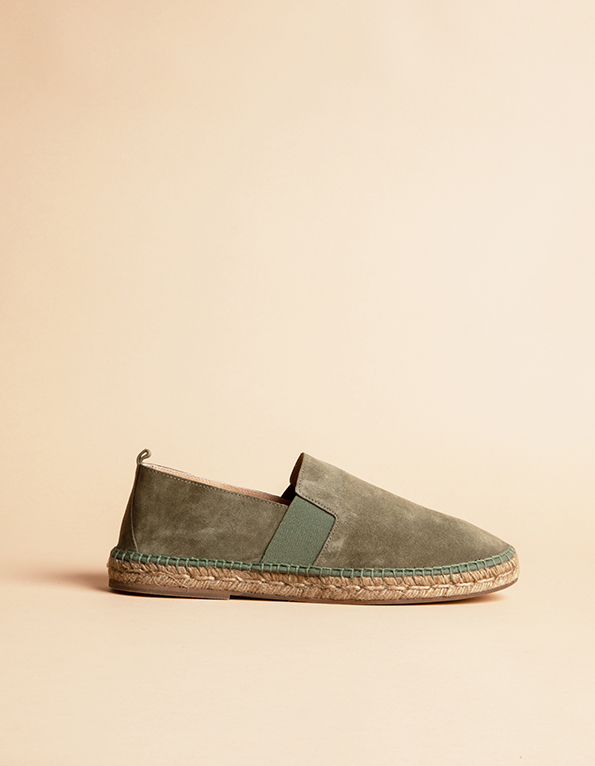 Both sporty and chic, Big Sur espadrilles are absolutely comfortable. These khaki suede espadrilles are refined and chic. They are slightly higher on the forefoot with two elastics on each side.