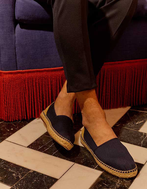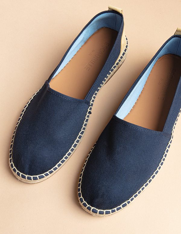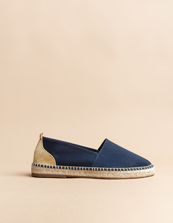 This navy blue men’s espadrille with a suede reinforced heel will be a go-to item in your wardrobe, from spring to fall.