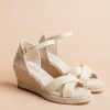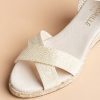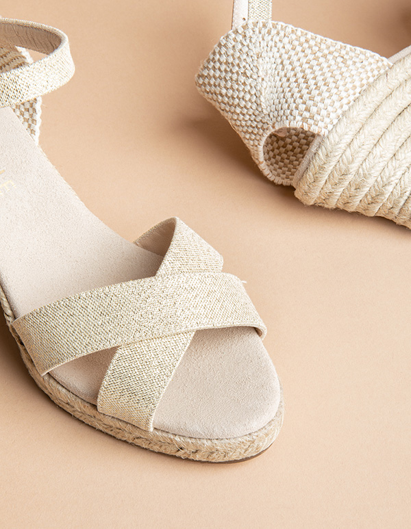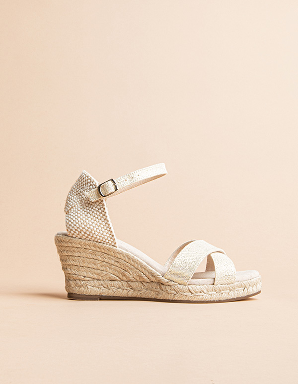 The Minorque medium heel open toe espadrilles will be your favorite shoes for beautiful summer days. These wedge espadrilles are mad of golden canvas and will match all your outfits.