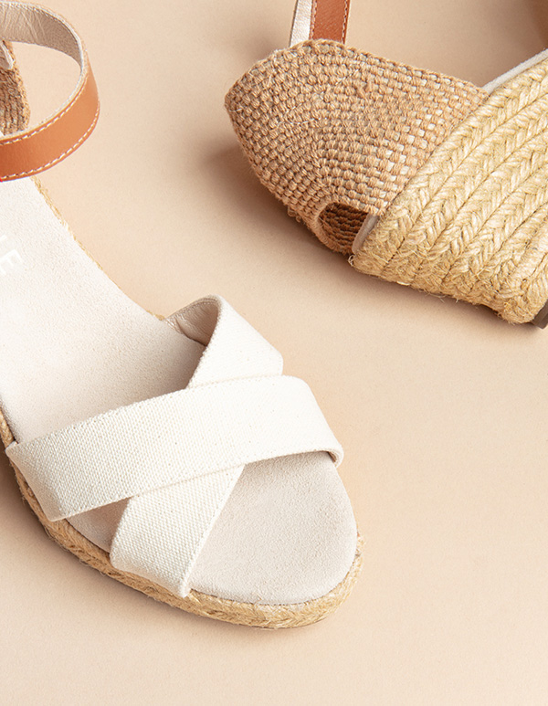 Minorque wedge espadrilles with a strap. These medium heel canvas espadrilles are a perfect combination of chic, refinement and comfort.