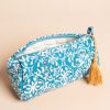 | Description | Petite trousse, pochette en coton imprimé bleu écru grâce à la technique ancestrale du blockprint, impression à la main par des indiens artisans de l'Ouest de l'Inde. |
