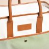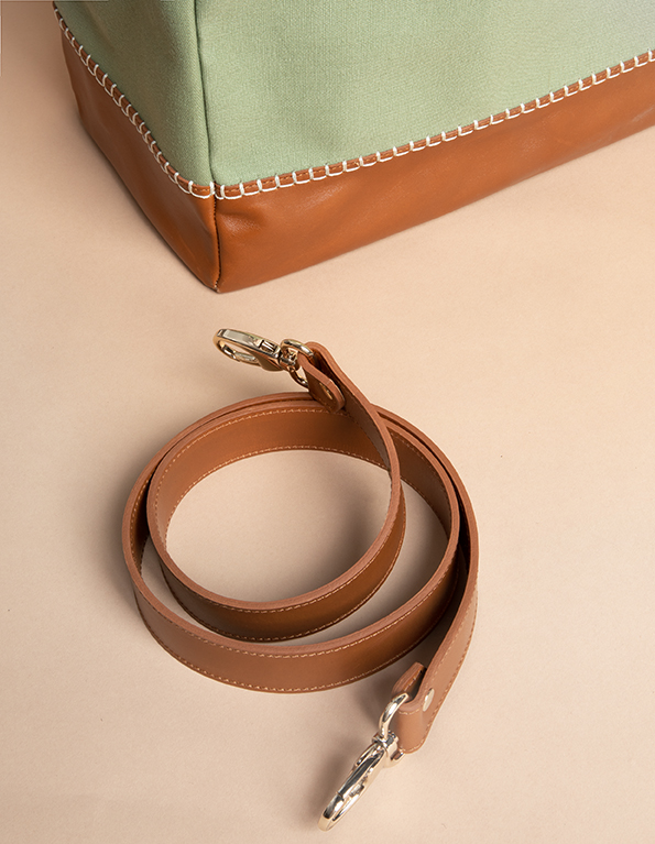 Khaki-colored cotton canvas and cream-colored cotton canvas, cream-colored cotton inner lining. These canvases are woven by a French workshop and finished before being sent to Spain, where the bag is produced in the region of Murcia. The leather is selected and tanned in Spain. It may come from other European countries such as France or Italy.