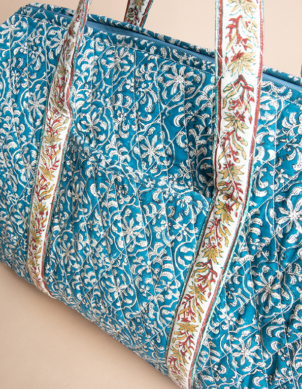 | Description | Sac Week-end grand format, idéal pour vos escapades de quelques jours. Ce sac de voyage est en toile imprimée au blockprint, impression à la main, une technique ancestrale. Certaines imperfections peuvent apparaître liées à cette technique mais cela apporte tout le charme au produit. |