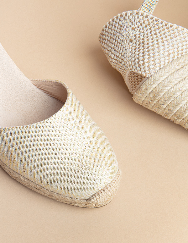 The golden wedge Venezia espadrilles are a combination of upmarket design and chic, trendy style.