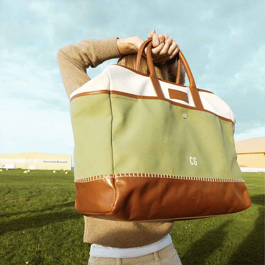 They are weekender bags: quite iconic and timeless models made for short breaks. The base is crafted from high-quality leather and the canvas is sewn as our espadrille. Inside, there are two drawstring pockets on either side for storing your shoes – preferably your Escadrilles! And importantly, you will be able to personalize it with your initials.